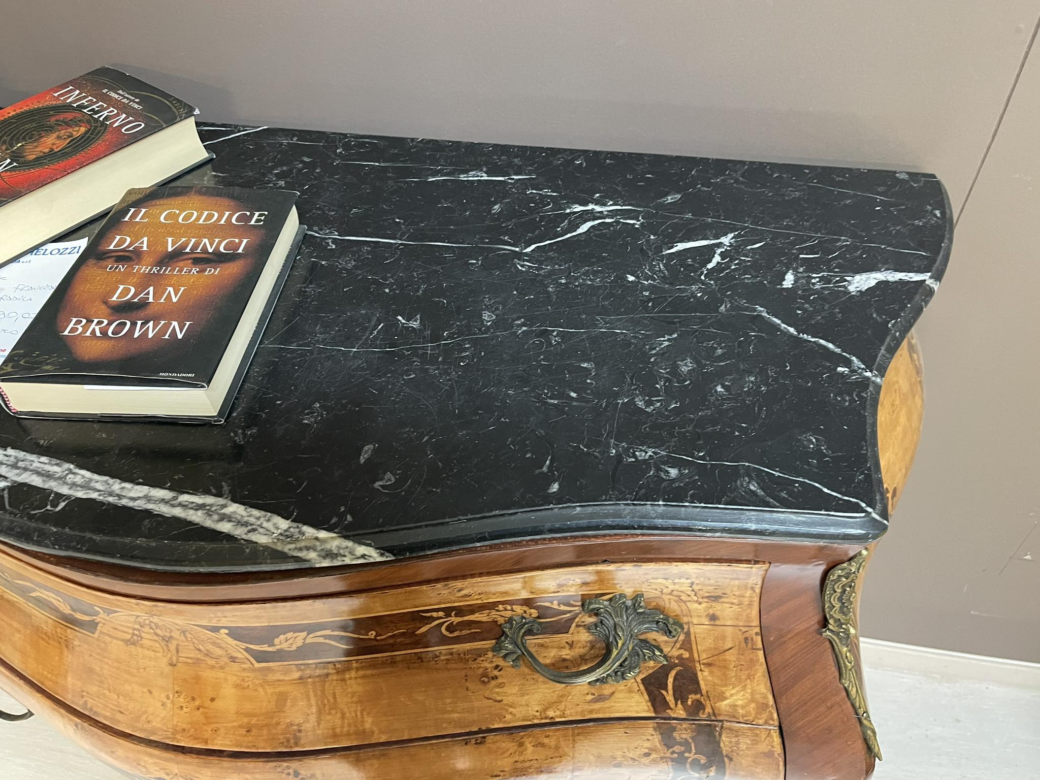Comò in radica con piano in marmo