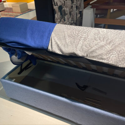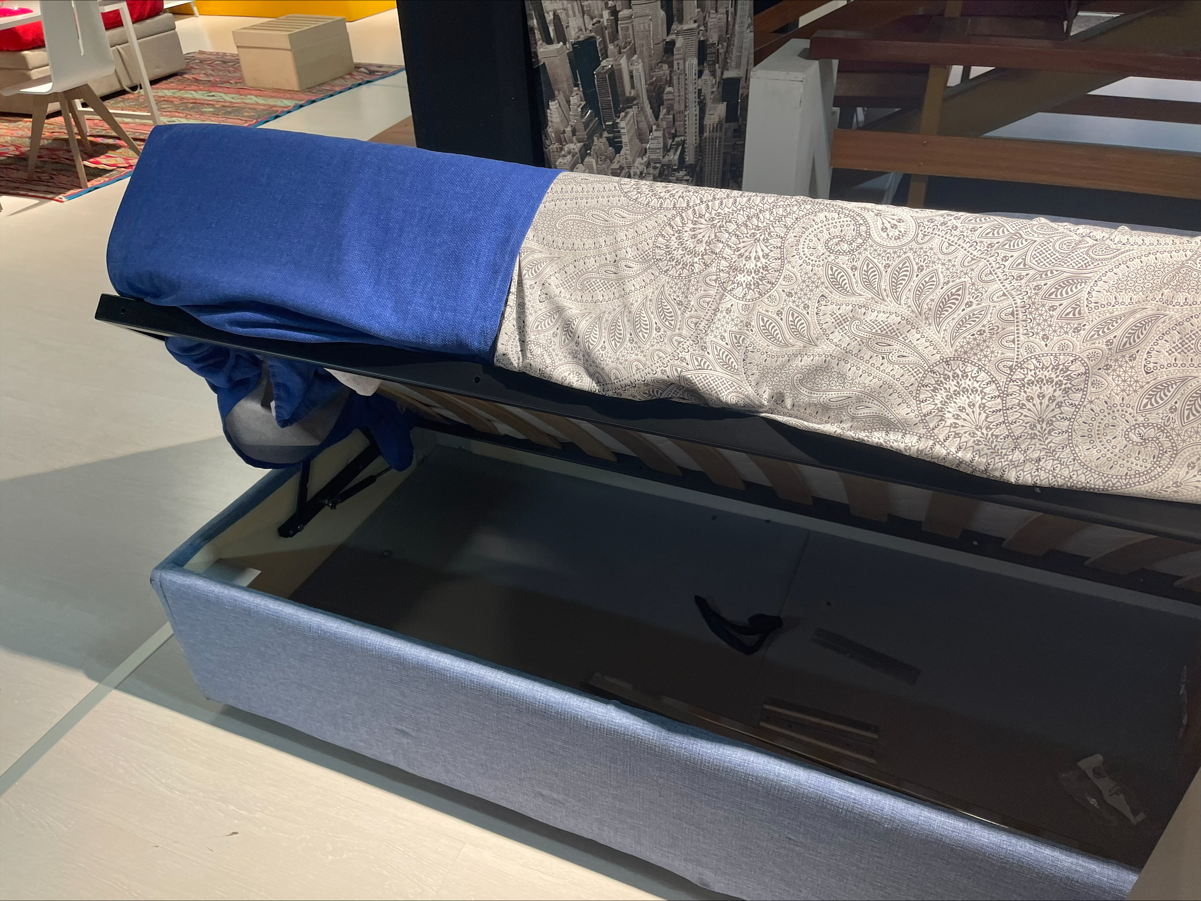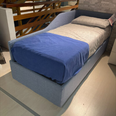 Letto singolo in tessuto sfoderabile, con contenitore.